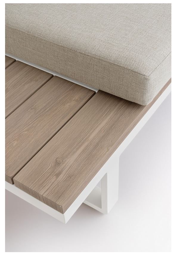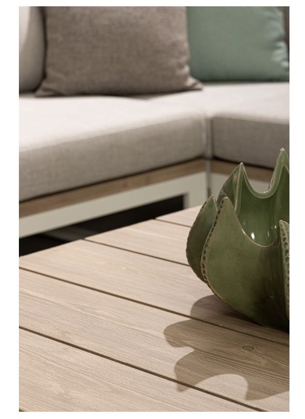 Sofa-Seitenteile und Couchtischplatte aus Aluminium mit Holzoptik-Lackierung,